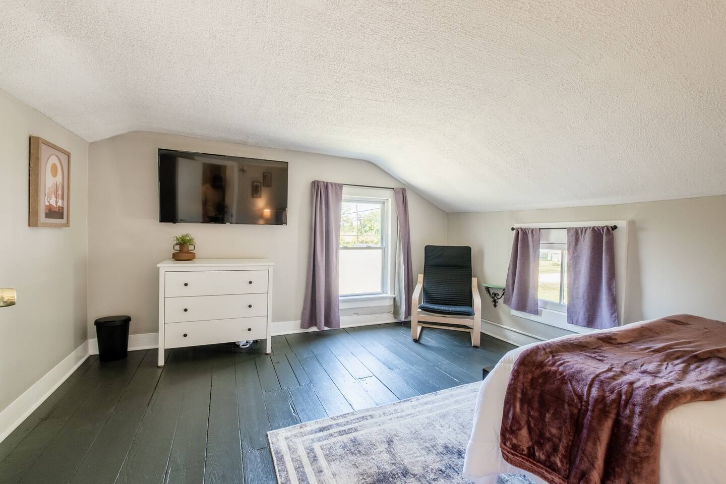 Welcome to The Fox's Den! This charming 3-bedroom retreat features a luxurious king bed, two queen beds, with Smart TVs in each bedroom. Enjoy the cozy living area, fully equipped kitchen, work space in the office or unwind by the fire pit in your fenced in outdoor space. Conveniently located near local attractions yet offering peace and tranquility. Perfect for a relaxing getaway or local adventures. Book your stay at The Fox’s Den today!