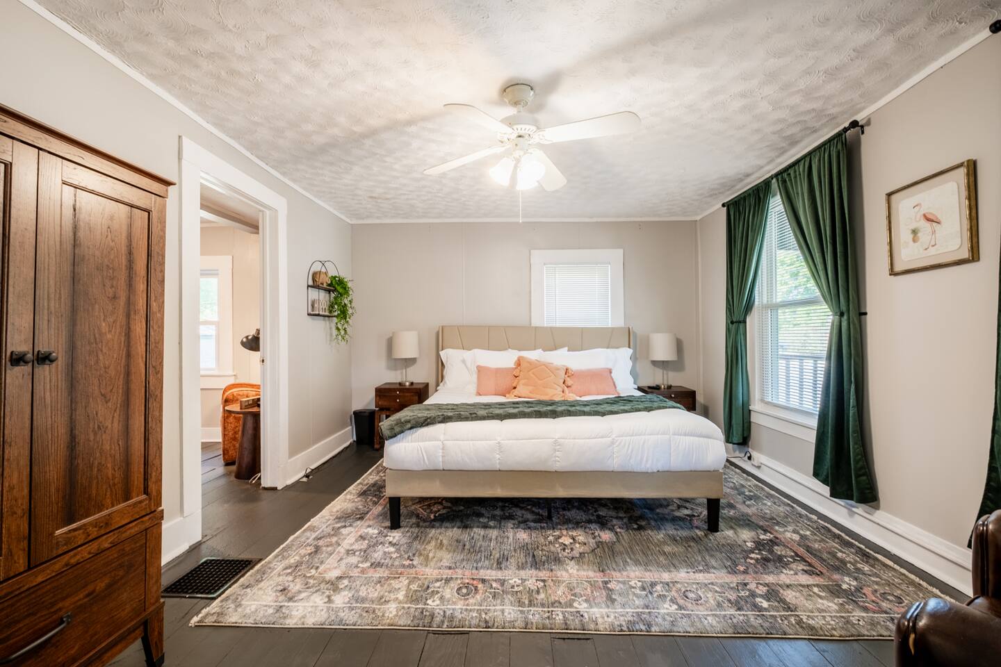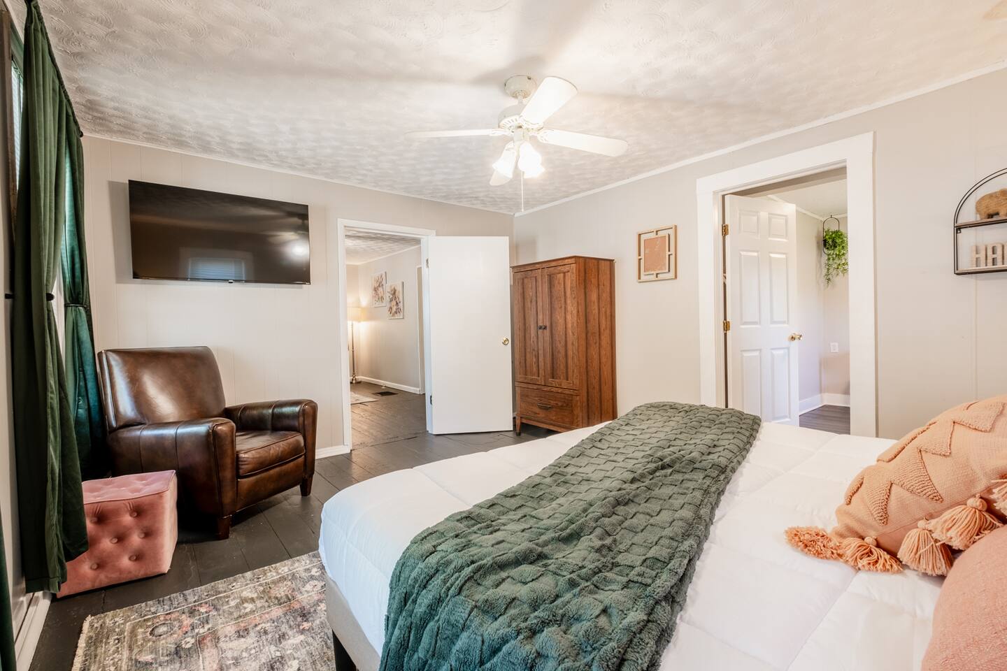 - 3 cozy bedrooms: 1 with a premium hybrid king mattress, 2 with premium hybrid queen mattresses - Smart TVs in each bedroom and the living room - Fully equipped kitchen: fridge, stove, dishwasher, Keurig, microwave - Dining table seats 6 - Dedicated office space, reading nook, and high-speed WiFi - Relaxing living room with Smart TV—ready for streaming your favorite shows - Walk-out to a fenced backyard